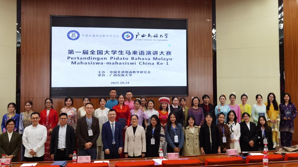 第一届“全国大学生马来语演讲大赛”由中国非通用语教学研究会主办,广西民族大学承办,是中国高校马来语专业首次的国家级专业性演讲比赛,受到各高校的重视。本次我系选手与来自北京外国语大学、信息工程大学洛阳校区、广东外语外贸大学、四川外国语大学、西安外国语大学、云南大学、云南民族大学、广西民族大学、海南外国语职业学院的马来语相关专业共23名选手同台竞技。