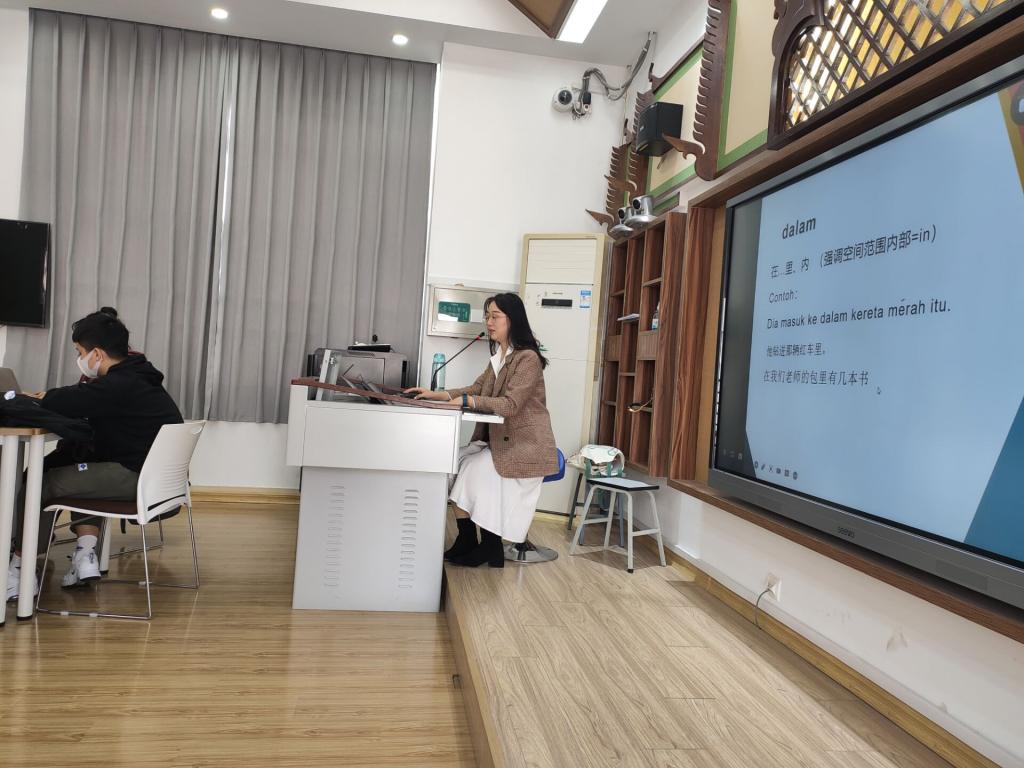2021年11月9日上午,外语系应用外语教研室在5002教室举办了教学观摩公开课活动。本次公开课旨在提升教师专业素养,提高教师教育教学水平,促进教师相互学习与交流。该课由应用外语教研室主任林超老师主持,马来语教师金曦主讲,主讲课程为《基础马来语1》。应用外语教研室全体教师参加了此次教学观摩活动。