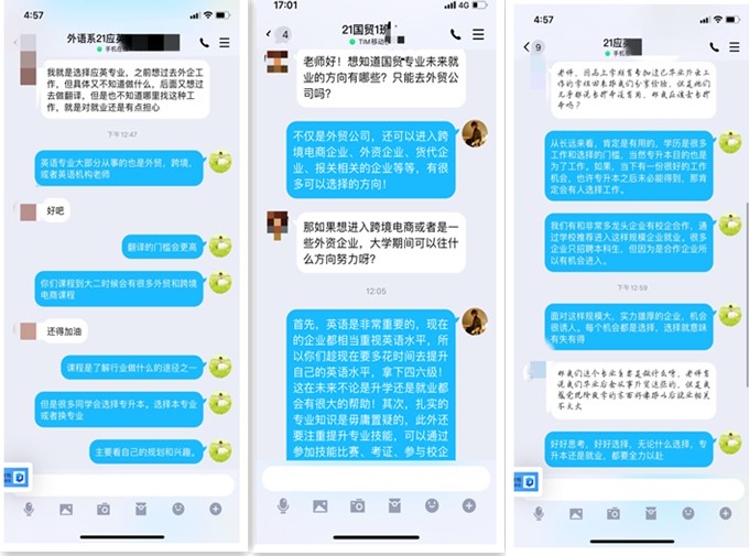 为了使21级新生对大学生涯的学习和生活有更全面了解和认知,商贸教研室3月15日至6月14日举办“老师听我说”活动,邀请教研室的全体教师每周安排一次与学生线上或线下交流,同学们可以分享自己在学习策略、校园生活、职业规划等方面的想法或期待,老师通过分享经验帮助同学们答疑解惑。