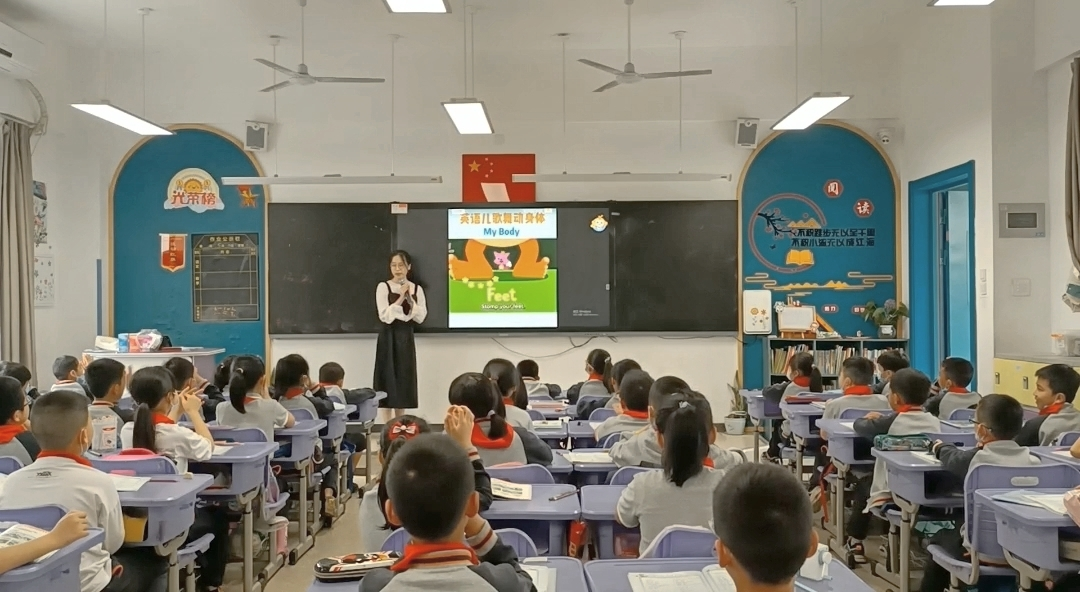 一首渲染力极强的音乐嗨动全场,把同学们的注意力全部吸引到了课堂上来。