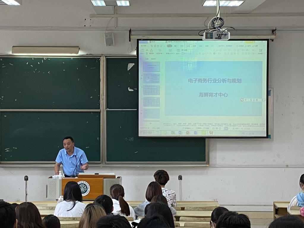 为了让同学们更好地了解职业教育、体验职业教育、理解职业教育,外语商贸学院商贸教研室在2022年职教周期间邀请了我院企业导师、福州市海狮育才融浩人力资源有限公司刘小清总经理为旗山校区的同学们做了题为《电子商务行业分析与规划》的讲座。