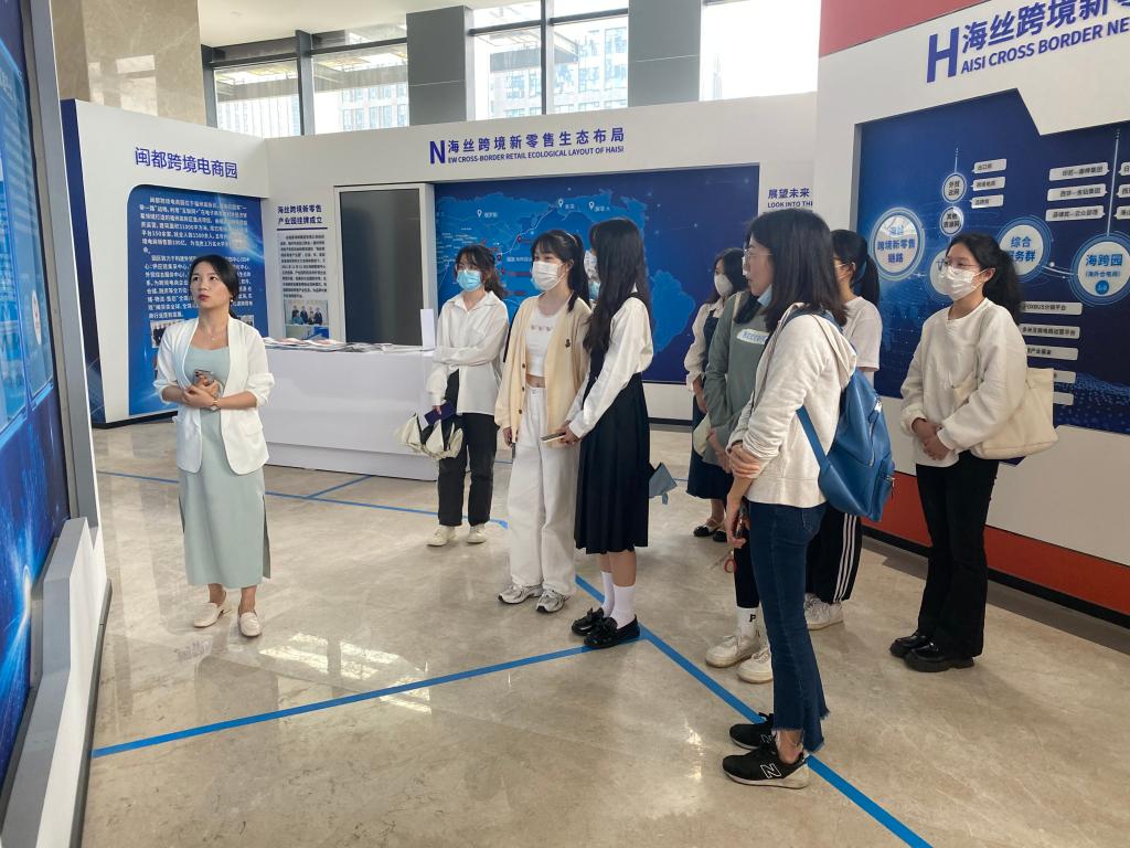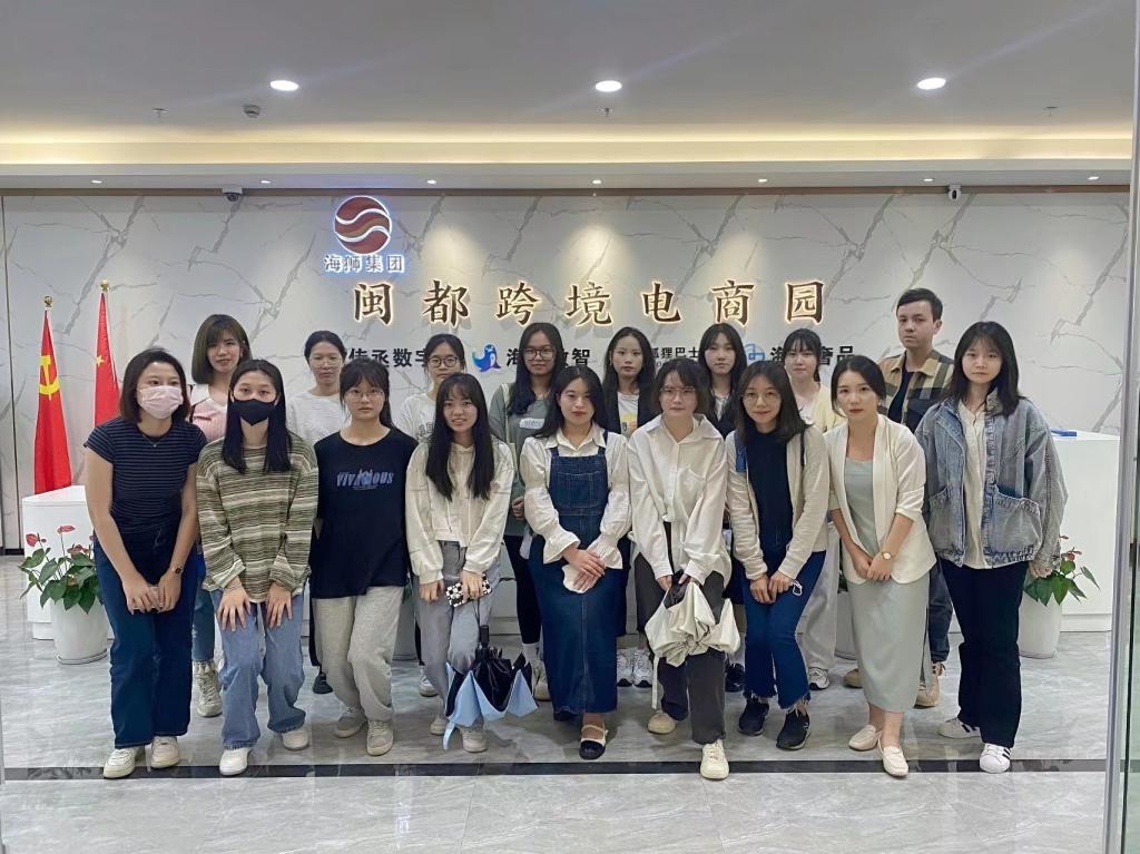 为了实现专业人才培养的目标要求,顺应大数据时代跨境电商行业的发展,帮助学生找准职业定位,2022年5月11日下午,商贸教研室组织20级应用英语、国际贸易实务专业的部分学生,由肖怡文 、傅雅凌、黄夏昕老师带领,前往校企合作基地福建海狮集团进行见习参观。