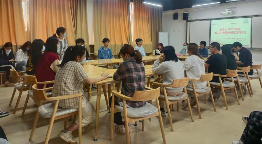 为进一步了解学生对我院教师教学情况的意见及建议,提高教学水平及质量,我院于2022年5月11日在福清校区期中开展座谈评教会。会议由外语商贸学院何少娴院长主持,卢燕红副院长、商贸教研室主任陈海燕老师、辅导员王玉琥老师以及各班级学生代表共同参加。
