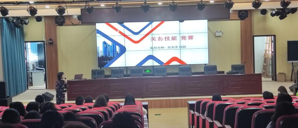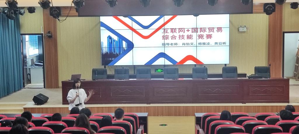 傅雅凌老师对互联网+国际贸易综合技能竞赛的赛项板块、赛项流程,赛项与课程如何结合做了详细介绍;韩静老师就关务技能的比赛要点,比赛方式,赛项与同学们学业、未来就业的结合点进行了介绍;郑堤姑老师对电子商务技能竞赛的比赛内容、评分细则进行介绍,并展示了部分参赛作品。