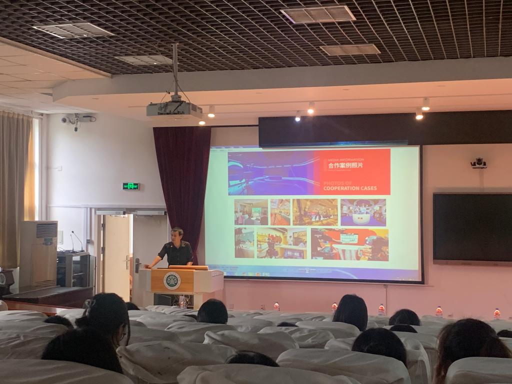 海狮集团副总裁刘小清先生围绕着“CEO最重要的一堂课”为主题,讲解了公司企业文化与合伙人晋升机制,以及工作室中的主要学习方向和实践内容。紧接着,福建富民云咖信息科技有限公司企业导师高美雅女士对企业情况进行了基本的讲解,介绍了工作室中的五大课程内容和基本的工资待遇情况,帮助同学们更好地了解富民云咖。最后,福建海纳蓝天信息教育科技有限公司副总经理墨一介绍了企业的基本情况,并展示了往届学员的学习作品,并且邀请2018级应用外语马来语专业的林倩倩学姐现身说法,分享了其在进入海纳蓝天后的成长与心得体会。
