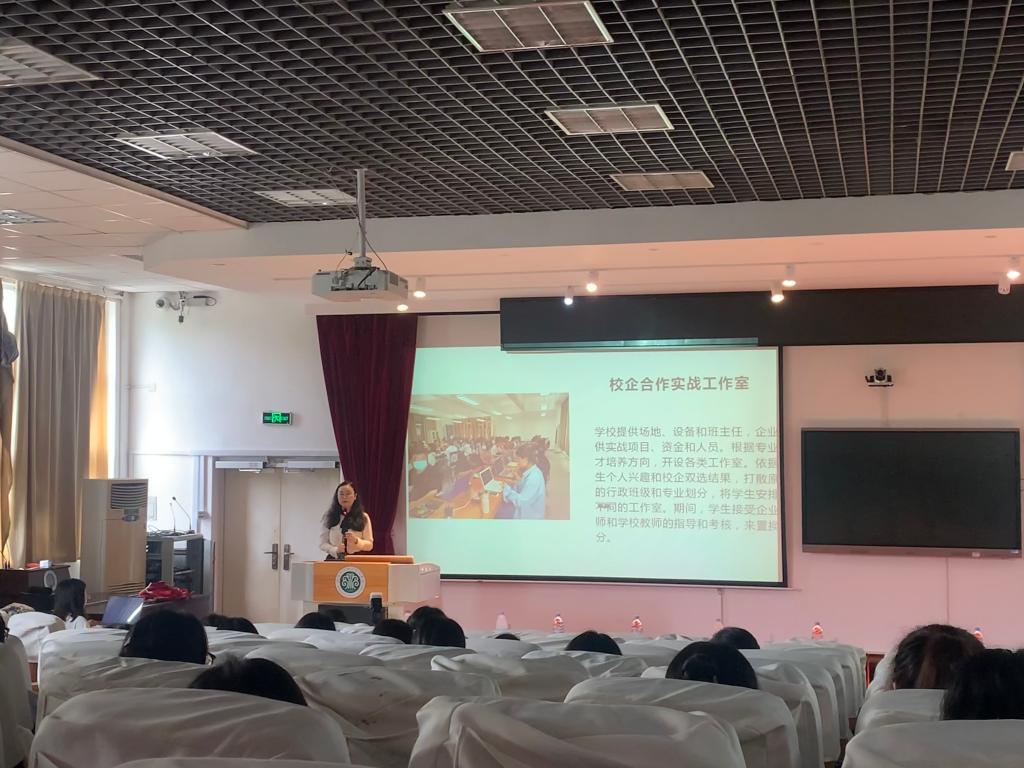 2022年6月15日下午14:00外语商贸学院在旗山校区2018教室召开针对2020级非师专业同学们的校企合作工作室招生宣讲会。