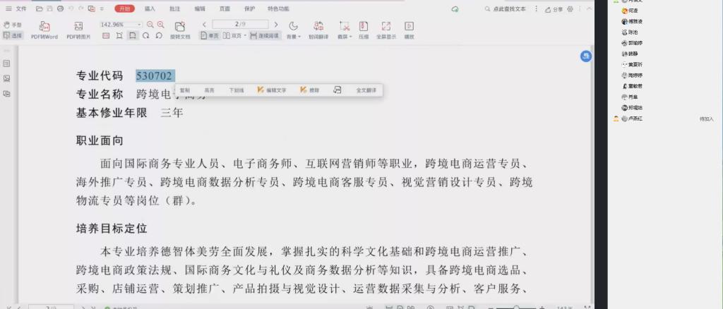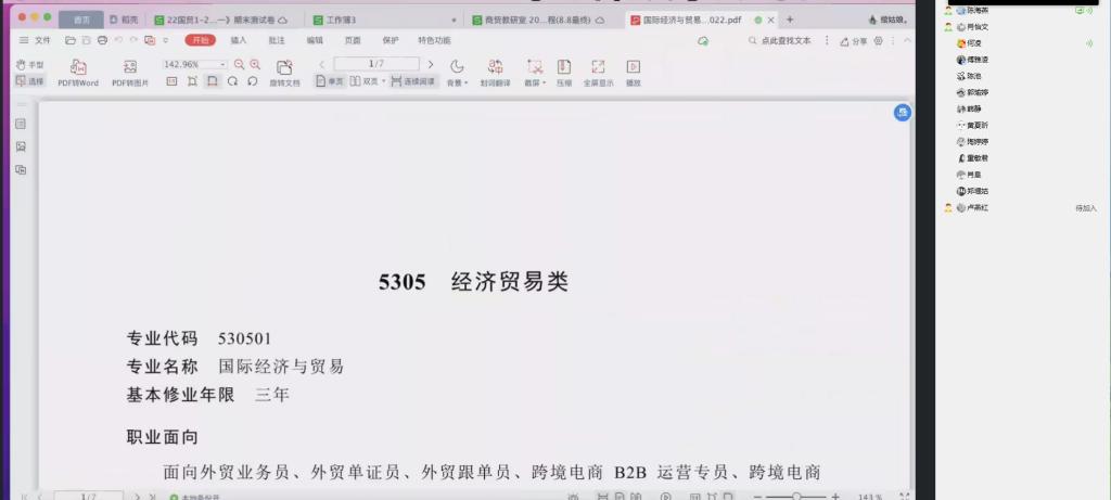 随着教育部新版《职业教育专业简介》(2022年修订)的出台,商贸教研室组织全体教师于2022年12月26日进行线上学习。针对应用英语、国际经济与贸易、跨境电子商务三个专业就专业的职业面向、培养目标定位、主要专业能力要求、主要专业课程与实习实训、职业类证书等内容开展深度交流与学习。