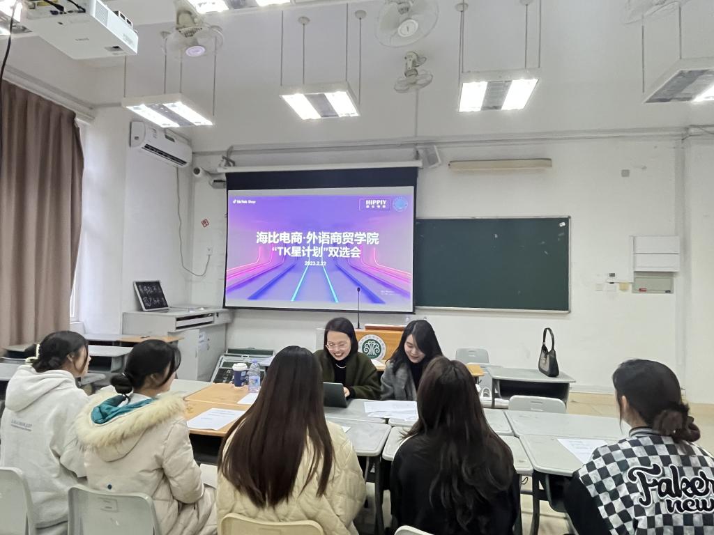 2月22日下午,外语商贸学院与海比跨境电商校企合作工作室“TK星计划”双选会在旗山校区2002、2004教室举行,本次双选会主要面向21级学生。我院教师陈池及来自海比跨境电商TikTok事业部负责人范青青、人事总监陈清梅参加了此次双选会。
