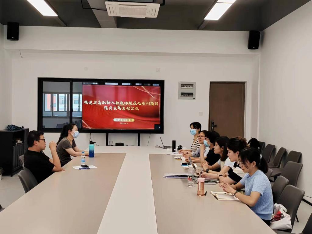 2023年5月22日至6月2日,外语商贸学院开展2022年福建省高职新入职教师规范化培训指导工作。我院郑堤姑、肖怡文、郭瑜婷、傅雅凌、詹秀萍五位教师承担此次的培训任务,指导来自福州软件职业技术学院、福建艺术职业学院和福州英华职业学院共三位教师。本次培训指导涵盖多个专题,内容丰富,形式多样,获得参训学员的一致好评。