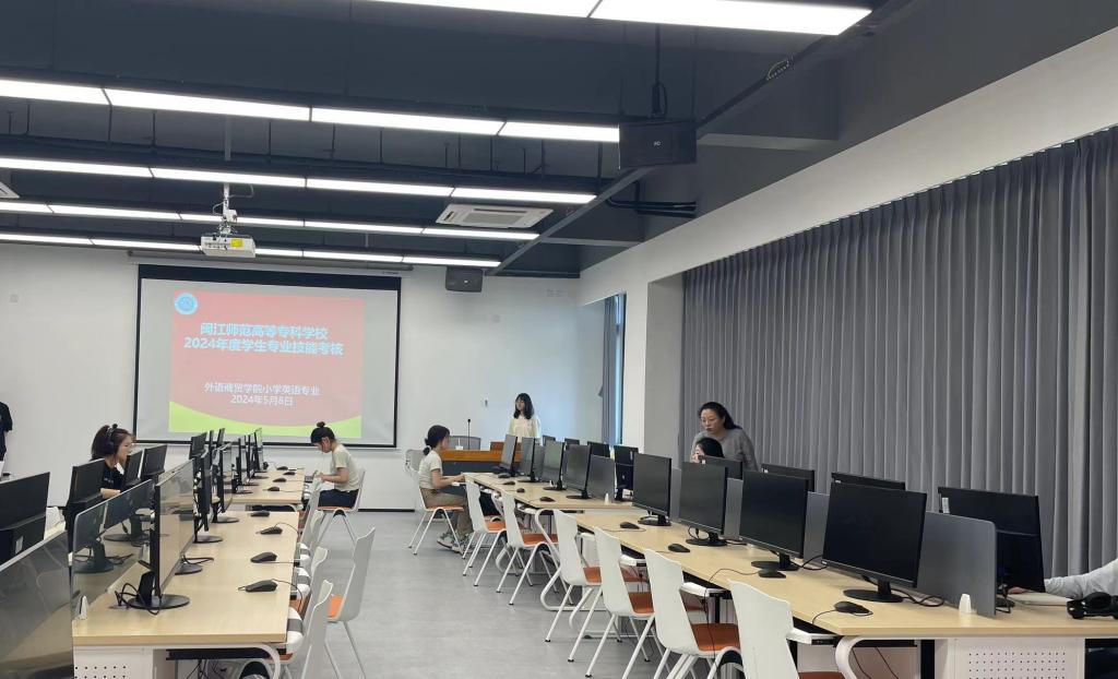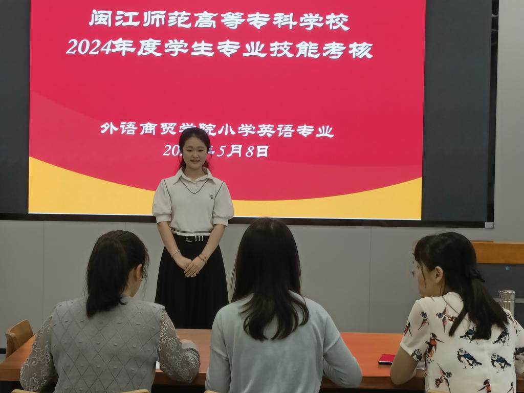 为全面落实教育部《小学教师专业标准(试行)》、《小学教育专业认证标准》、《小学教育专业师范生教师职业能力标准(试行)》、《义务教育英语课程标准(2022年版)》等文件精神要求,围绕高等职业教育的职业能力培养的目标,以提升学生的职业能力和提高学生的职业素质为核心,促进小学英语教育专业的发展,以考核促教学,以考核促学习,以考核促教研,全面了解学生对各项基本技能掌握的情况,检验小学英语教育专业技能和培养质量。2024年5月8日下午,外语商贸学院英语教育教研室在产创楼E301、E302、E309开展小学英语教育专业技能抽查考核。院长何少娴担任评委会组长,面试组由小学英语教育教研室主任尤佳及骨干教师组成。