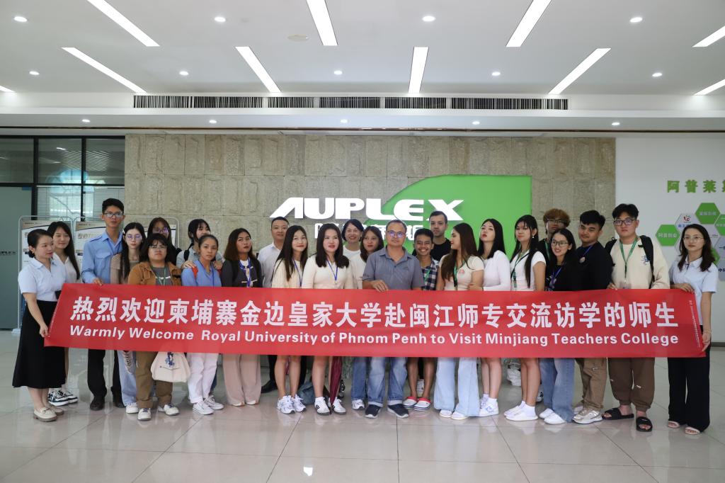 2024年9月4日下午,柬埔寨金边皇家大学国际处的Kim Sovannarith(金苏)教授和国际商务管理专业的18名留学生在外语商贸学院黄夏昕、黄凌云老师的带领下前往阿普莱斯集团见习。