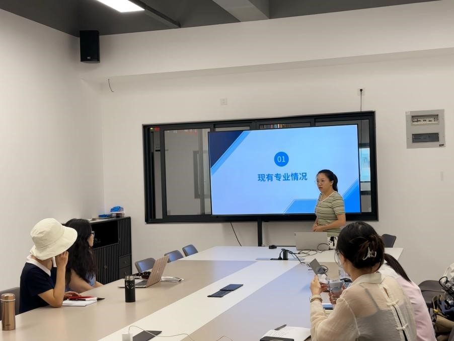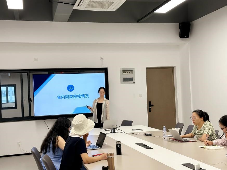 会议上,商贸教研室主任郑堤姑、小学英语教育教研室主任尤佳、应用外语教研室主任金曦基于前期调研数据,分别对专业现阶段生存状况进行了深入剖析,并详细介绍了各专业的发展路径。