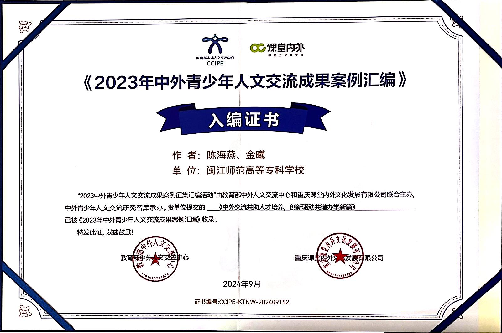 近日,教育部人文交流中心公布了2023年“中外青少年人文交流成果案例汇编活动”入编结果,外语商贸学院提交的《中外交流共助人才培养、创新驱动共谱办学新篇》案例成功入选《2023年中外青少年人文交流成果案例汇编》。