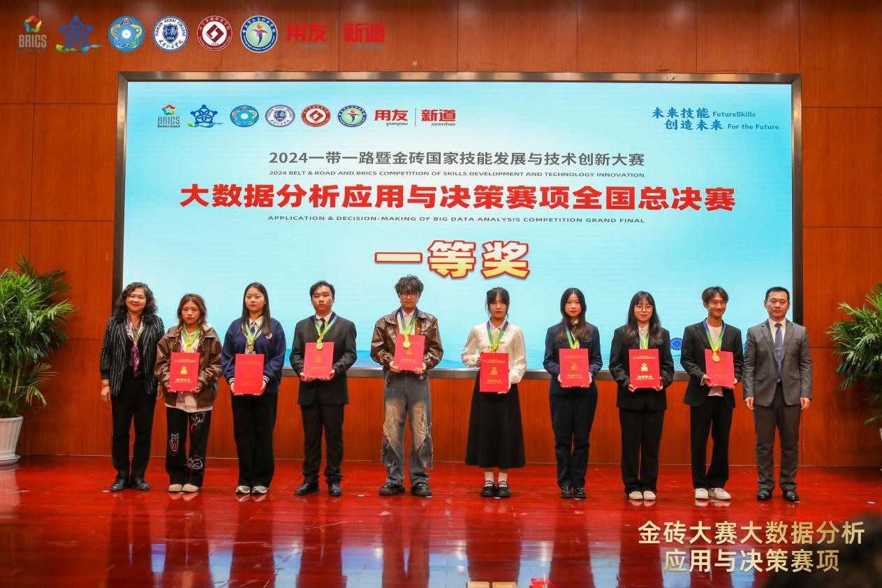 11月9日-10日,2024“一带一路”暨金砖国家技能发展与技术创新大赛大数据分析应用与决策赛项全国总决赛(高职组)在辽宁金融职业学院成功举办。我校外语商贸学院教师肖阜、陈池指导的学生团队通过全国选拔赛,从全国66所高职院校的95支参赛队伍中脱颖而出,以总成绩第一荣获电商大数据赛道一等奖,肖阜、陈池荣获“优秀指导老师”称号,闽江师范高等专科学校荣获最佳组织奖。