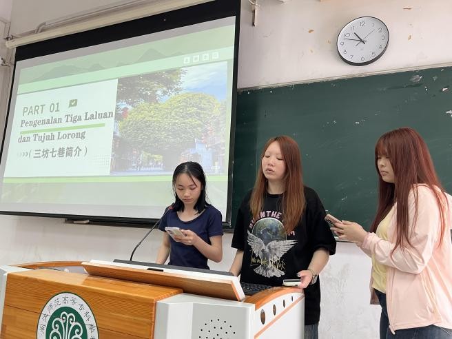 王心宜老师针对不同年级学生特点,对实训内容进行了差异化设计。24级学生围绕“福建文旅资源马来语传播”主题,分组完成文化翻译、PPT设计及模拟推介会展示,重点培养语言准确性与文化适配能力;23级学生则以“跨境电商直播与文化推广”为核心,通过脚本设计、即兴问答及突发状况模拟,强化直播口语表达与跨文化应变技能。