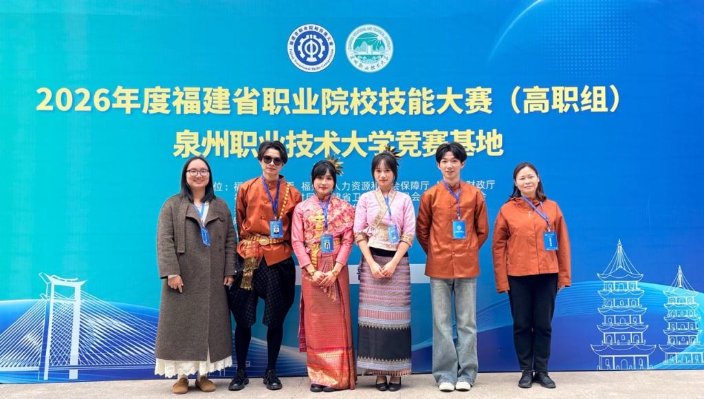 1月20日至22日,2026年福建省职业院校技能大赛(高职组)商贸赛道在泉州职业技术大学成功举办,共79支队伍同台竞技。我校外语商贸学院派出两支代表队参赛,凭借扎实的专业基础、出色的团队协作与良好的综合素养,在比赛中取得优异成绩。其中,由李绍梅、陶婷婷老师指导,陶诗成、陈欣妍、林坤宇、张可瑜四位同学组成的团队荣获金奖;由肖阜、郑堤姑老师指导,方巧惠、林潞愉、丁益、柯子悦四位同学组成的团队荣获银奖。