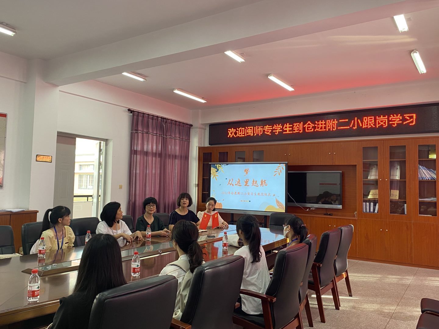 实习首日,在福州市仓山区教师进修校第二附属小学,我系10名学生在何少娴院长的带领下,走进校园。小学的领导们为实习生准备了一场别开生面的欢迎仪式。仪式上,校领导对学校的基本情况作了简要介绍,并强调了实习阶段需要注意的事项。随后,同学们跟随校领导参观校园,对未来三个月工作生活的地方,有了初步的了解。屏山小学、仓山区实验小学、仓山区第二中心小学等校也都为同学们的到来开展了欢迎仪式。欢迎仪式后,同学们与指导老师们就正式展开了实习工作。