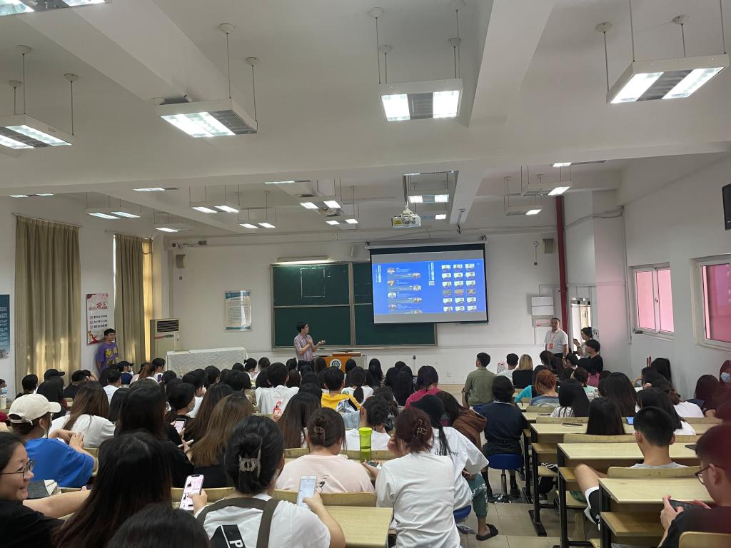 2021年10月14日外语系召开海狮跨境电商实战工作室宣讲会,由商贸教研室主任陈海燕老师主持,特邀海狮集团刘小清、郑华锋经理到校为同学进行项目宣讲。19级应用英语专业、国际贸易实务专业、应用外语专业(马来语、柬埔寨语方向)全体同学参加。