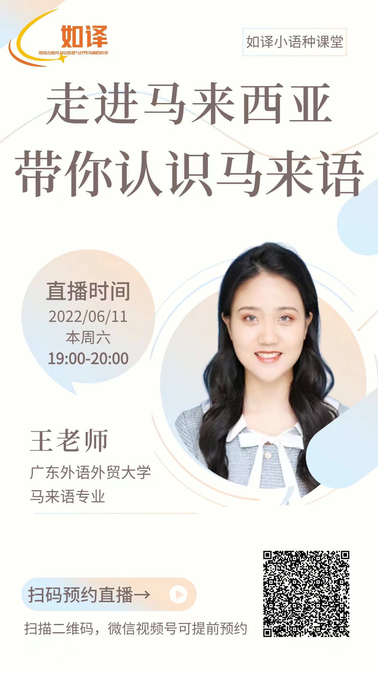 为推动校企合作、提升教师社会服务能力,2022年6月11日,外语商贸学院教师王心宜受邀前往福州如译翻译有限公司开展小语种系列直播课程。本次直播课程主题为“走进马来西亚,带你认识马来语”。