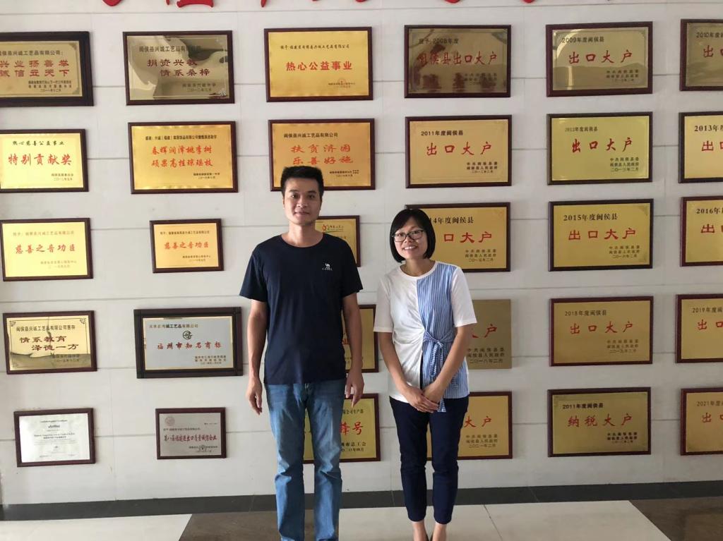 为了深入了解我院各专业对应产业发展现状和趋势,谋求校企深度合作,拓宽学生就业渠道。2022年8月17日上午,商贸教研室郑堤姑老师前往闽侯县兴诚工艺品有限公司进行调研。本次调研受到公司许总的热情接待。