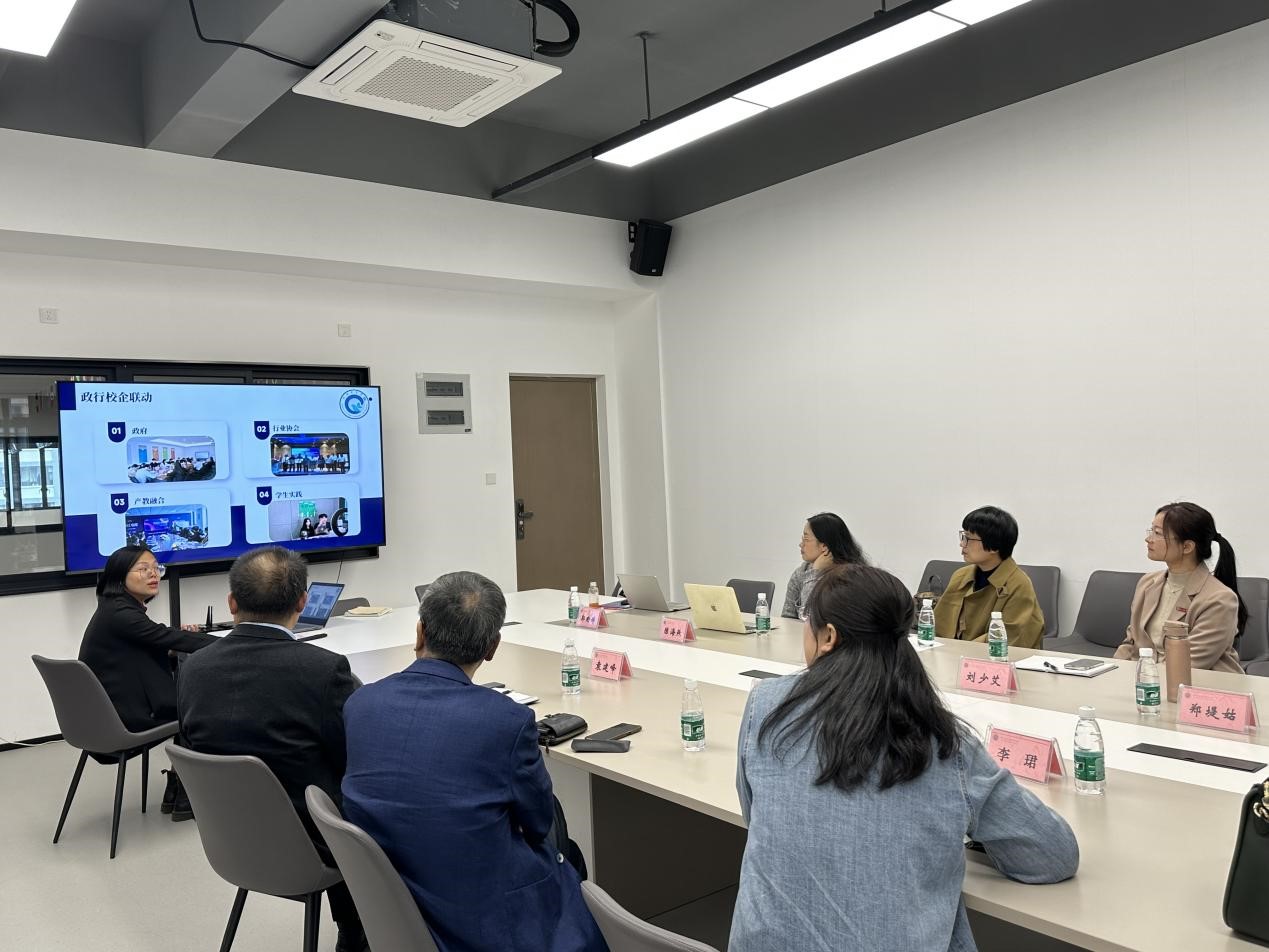 在参观完现代商贸实训中心后,双方在303会议室开展交流研讨。会上,何院长对焦作师专一行表示热烈欢迎,介绍我院的办学历史、办学特色和专业设置思路,并表达加强校际合作,互相学习共同成长的愿景;郑堤姑主任介绍了教研室的基本情况,从政行校企四方联动、师资团队、技能竞赛、社会服务等方面介绍专业建设成果。随后,焦作师专郭处长、袁院长和李主任重点对学校的竞赛管理和产教融合开展机制进行考察调研,仔细询问了我院的技能竞赛开展、校企合作相关工作情况。交流会结束后,双方领导表示,本次交流以学习为纽带,增进了双方感情,促进了共同发展。