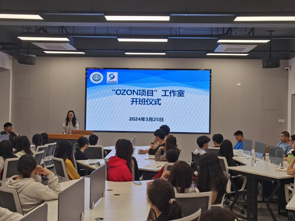 2024年3月25日,外语商贸学院与华世盛通(福州)国际贸易有限公司共同举办的“Ozon平台人才培养”校企合作工作室开班仪式在产创楼E306圆满举行。出席本次开班仪式的有华世盛通技术总监曹垒、外语商贸学院副院长陈海燕、“Ozon工作室”班主任詹秀萍以及参与工作室的60名同学。