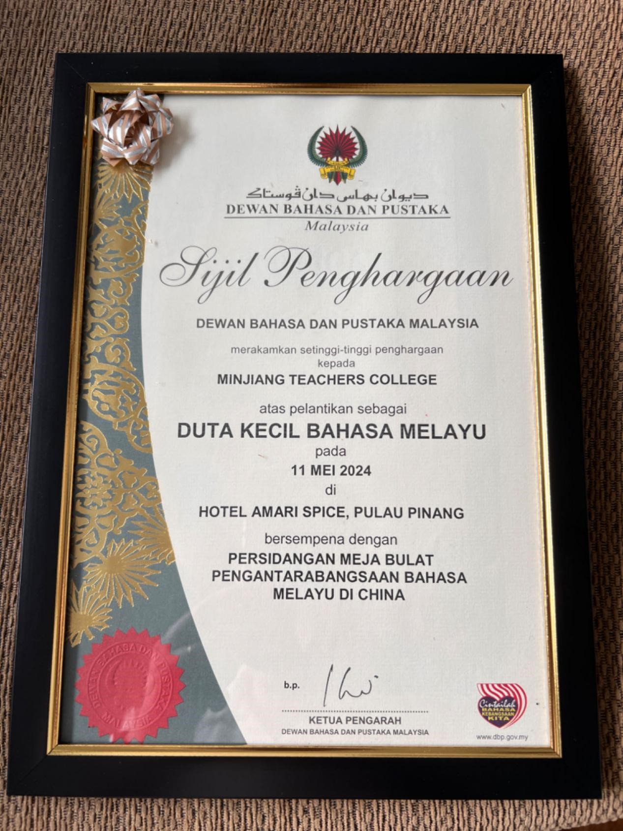通过此次研讨交流,我院应用外语(马来语)专业不仅走上国际舞台,更为未来的合作空间搭建起桥梁。同时,“马来语民间大使”“国际马来语教育贡献奖”两份殊荣也是对我院马来语教育工作的肯定和鼓励。我院将倍加珍惜这份荣誉,继续努力推动中马两国之间的职业教育领域的合作,为深化两国人民之间的相互了解和友谊贡献更多的力量。期待未来,我们将继续秉承着开放、包容、创新的精神,与更多马来西亚高校开展广泛深入的合作,共同促进中马教育交流,为两国关系的长远发展做出更多贡献。
