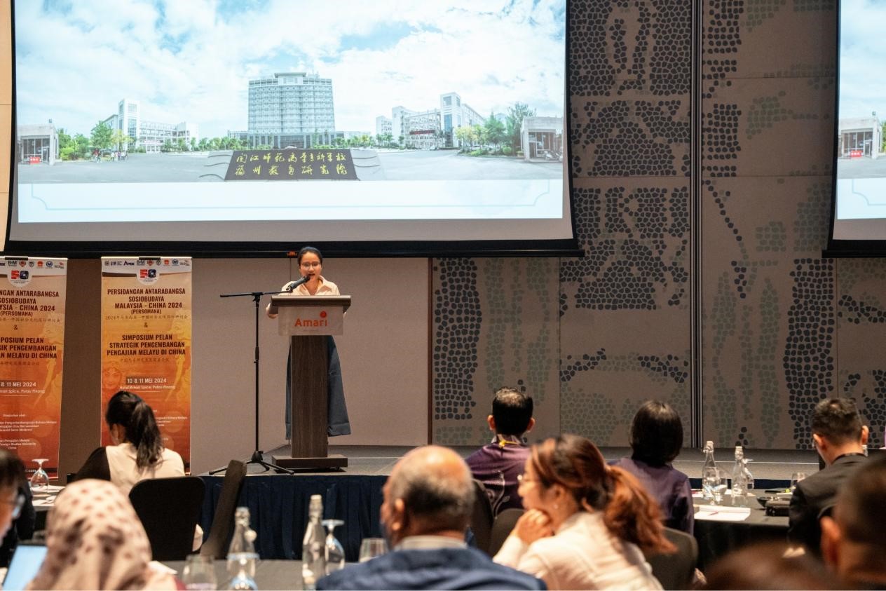 2024年5月10日-11日,由马来西亚理科大学和北京外国语大学联合举办、中国驻槟城总领馆支持的马中社会与文化国际研讨会在马来西亚槟城召开,中国驻马来西亚大使馆教育参赞赵长涛、中国驻槟城副总领事丁巧、马来西亚理科大学副校长阿都拉曼、马来西亚国家语文出版局局长哈扎米贾哈里、马来西亚翻译与创作协会会长林尊文、中马高校学者及中国14所开办马来语专业的高校代表等近百人出席开幕式。外语商贸学院应用外语专业骨干教师王心宜代表我校参会。