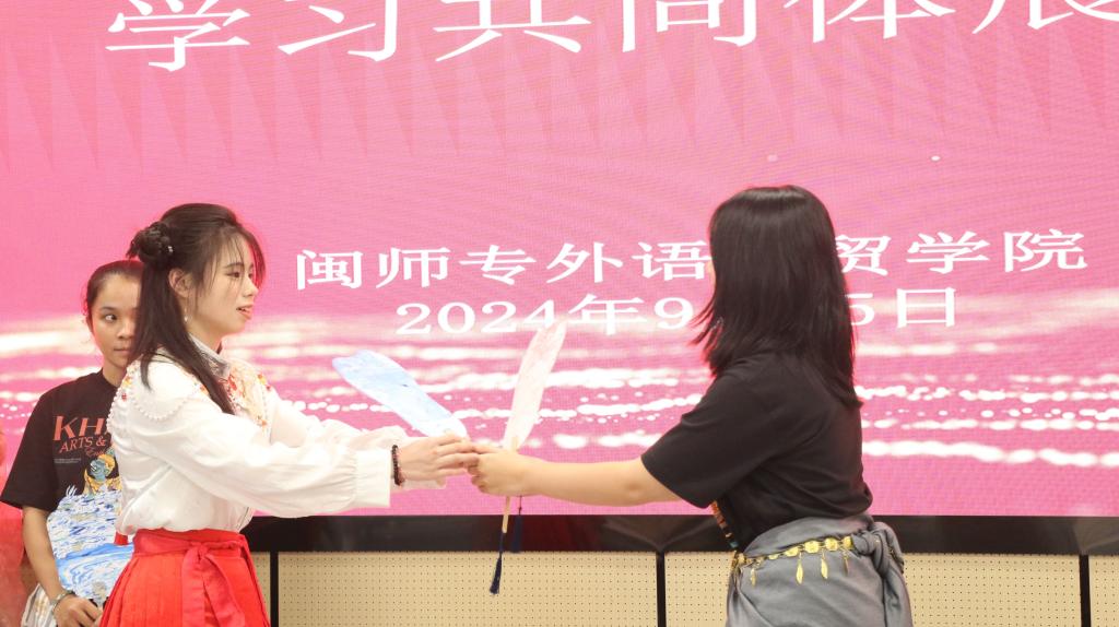 成果展上,柬埔寨留学生与我校学子通过民族传统舞蹈、共读双语经典作品、沉浸式体验汉服、互赠亲手制作非遗漆扇等环节集中展示了在电子商务、语言文字、文化艺术等领域的学习交流丰硕成果。现场氛围热烈非凡,处处洋溢着中柬友好交流的浓厚气息。