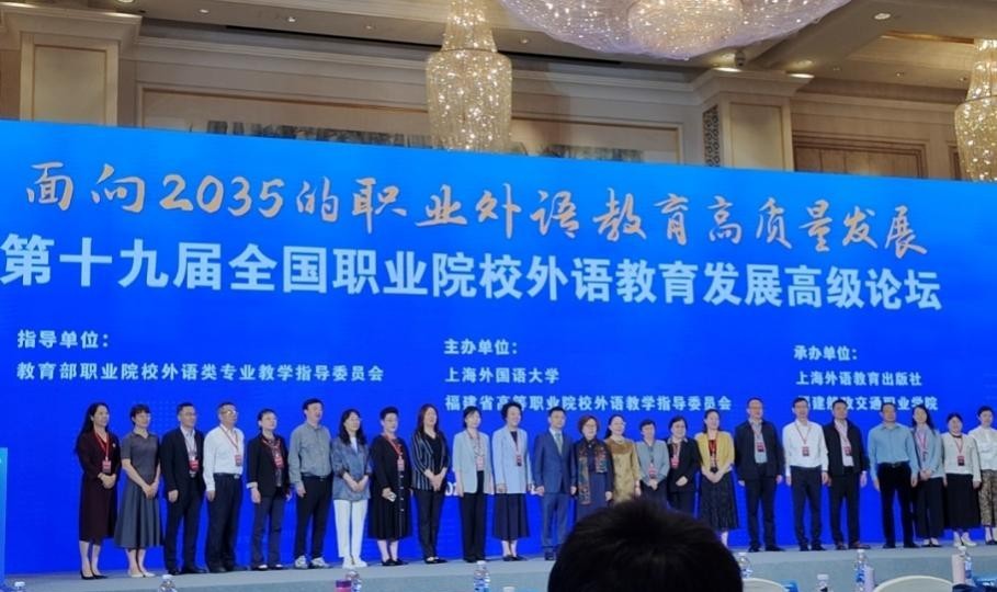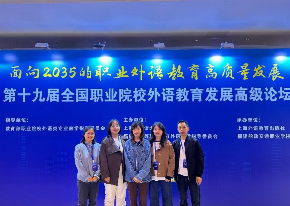 2025年4月25日上午,第十九届全国职业院校外语教育发展高级论坛在福州隆重举行,闽江师范高等专科学校外语商贸学院教师代表傅雅凌、韩静、林莺、陈俊华、李绍梅应邀参会,与全国职业院校外语教育领域的专家学者共同探讨新时代职业外语教育的发展方向与创新实践。
