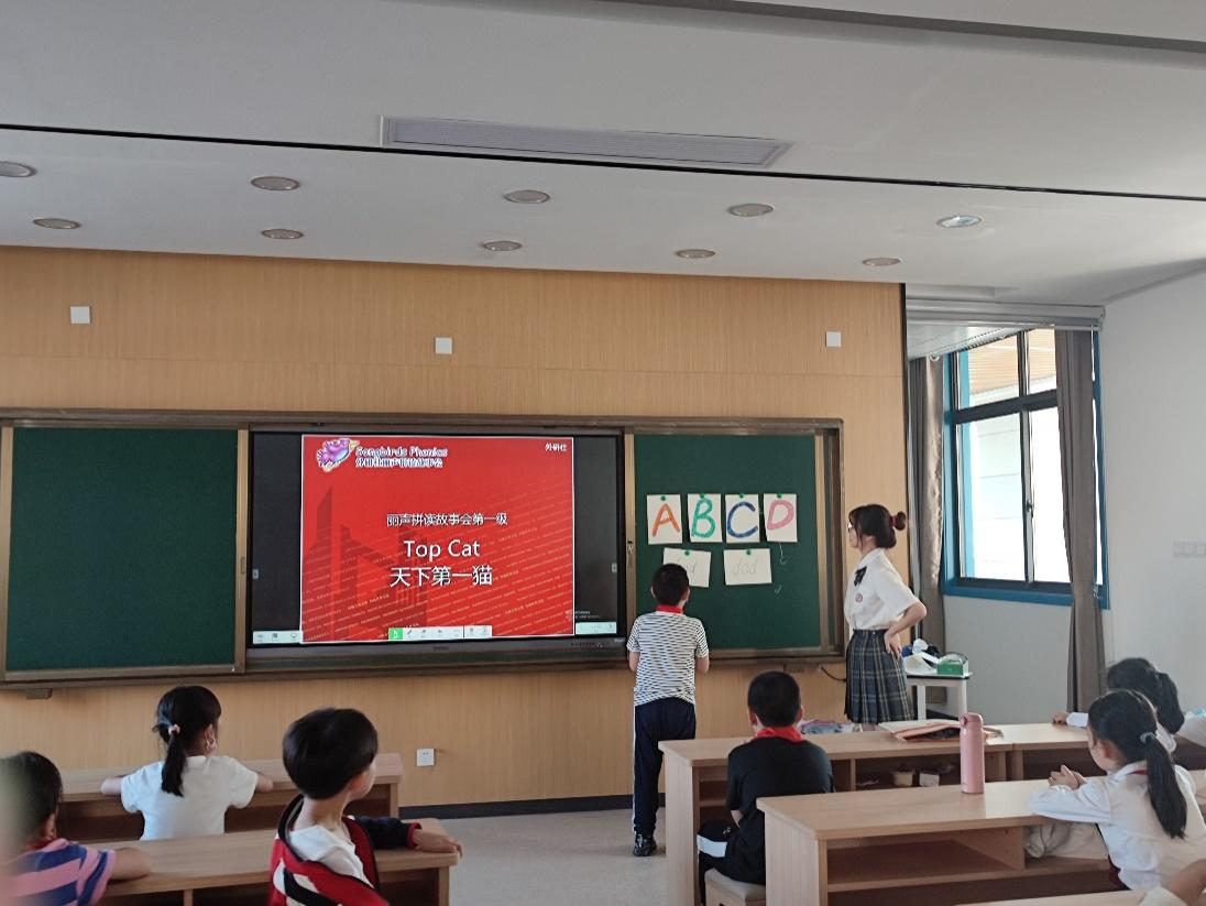 在课堂上,学生们积极参与丰富的课堂活动,包括上台参与单词连线游戏,正确率高的学生则有小红花作为奖励。同时小杨老师也请同学表演歌谣,既锻炼学生的表达能力,也提升了学生的上课效率。本次绘本教学活动学生参与非常积极,达到很好的效果。