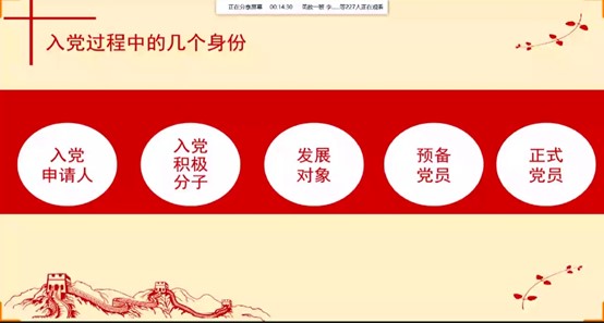 会议开篇,钱小莉老师播放了一首《中国共青团团歌》正式拉开此次会议序幕,紧接着,向同学们介绍了共青团的历史与背景,并阐释了“三会两制一课”与“团员”的含义。同时,向同学们介绍了党的性质、外语系党组织的组成部分,着重强调了入党的流程并详细的讲解了入党推优的要求。会议的最后老师鼓励同学们应该坚定入党的信念,争取早日成为一名合格的共产党员,把实现共产主义作为人生的奋斗目标。