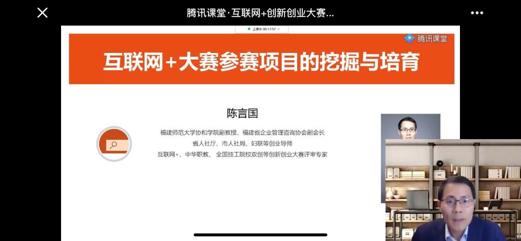 为做好我校“互联网+”大学生创新创业大赛的备赛工作,外语商贸学院于2022年4月14日邀请陈言国副教授开展“互联网+创新创业大赛参赛项目的挖掘与培育”线上指导讲座,外语商贸学院全体学生聆听本次讲座。