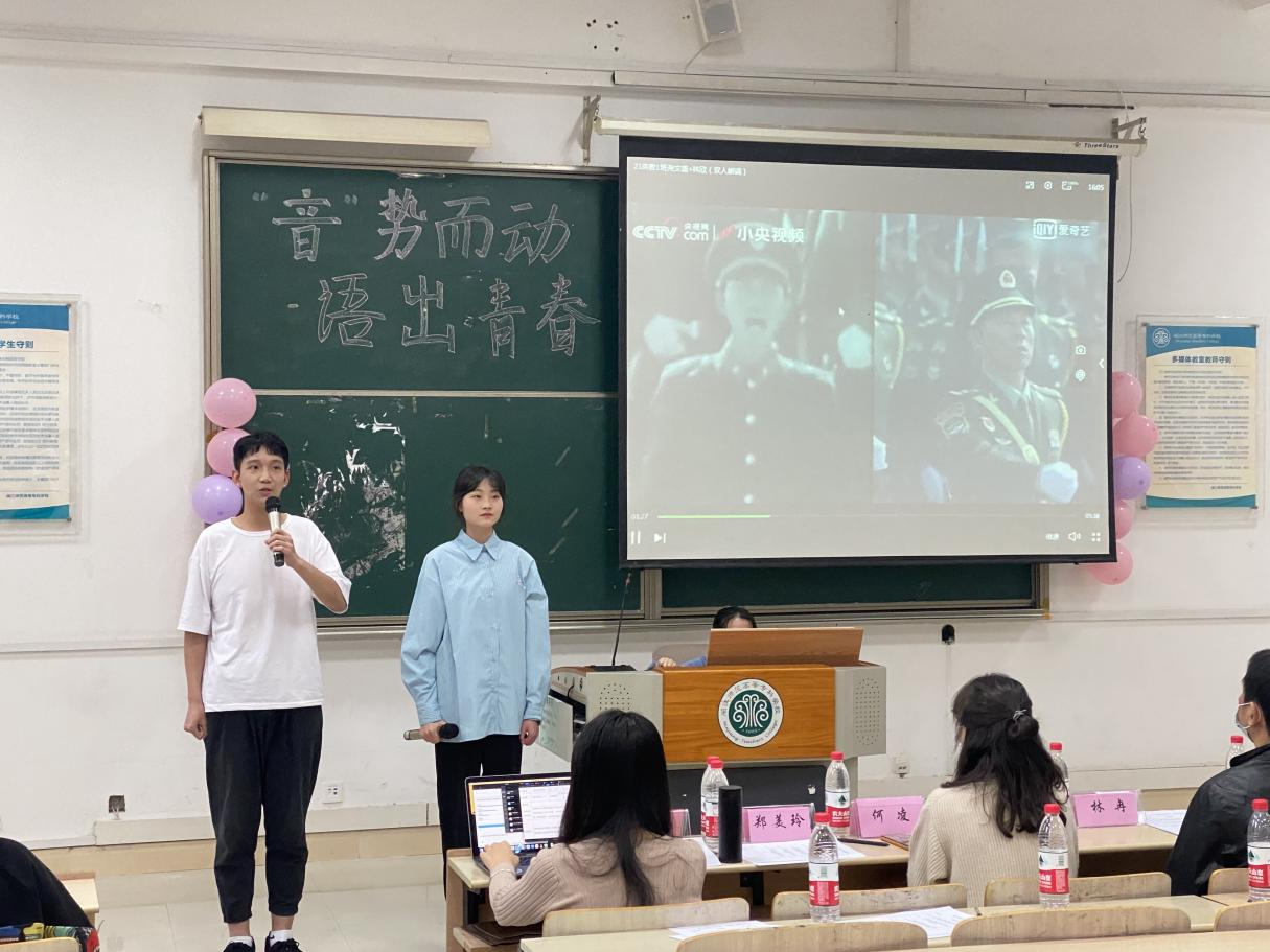 为提高外语商贸学子的人文素质和道德情操,展现当代大学生风采,外语商贸学院于2022年4月20日在教学楼1016教室举办以“‘音’势而动,语出青春”为主题的比赛。出席本次活动的有学院党总支副书记(主持)林冉、副书记陈颖、各专业老师何凌、林敏霞、王心宜、程妍以及团委学生会指导老师许璐颖、学院自律会指导老师洪扬、辅导员陈晨老师。