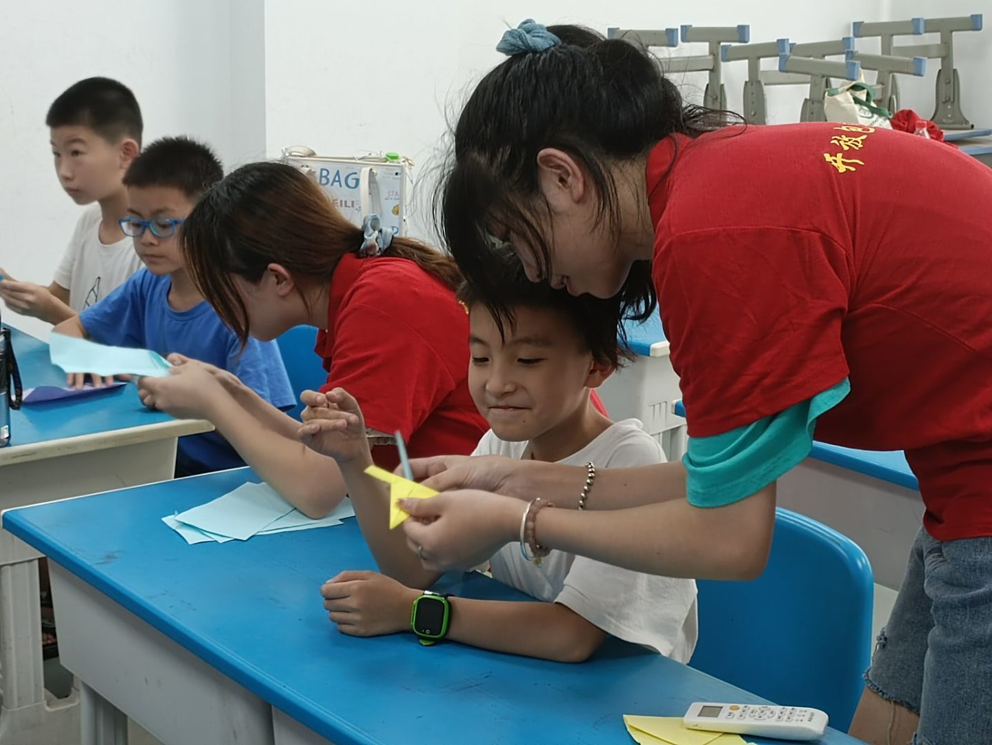 7月1日-7月3日,青年志愿者服务队开展“多彩支教”活动,走进小学课堂,运用专业所学知识,针对高低年级开设党史宣讲、趣味英语、小语种文化、手工折纸、手语操练、书法艺术等不同课程。在党史宣讲课上,志愿者带领孩子们学习了中国共产党史中的英雄人物故事,并学唱歌曲《没有共产党就没有新中国》;趣味英语课上,志愿者引导孩子们开展角色扮演,以绘本人物角色的设定,提高孩子们学习英语的兴趣;小语种文化课上,孩子们了解了柬埔寨与马来西亚的文化习俗,纷纷表示对其充满向往。手工课上,志愿者和孩子们进行了互动小游戏,大家一起折纸、粘土制作,活跃的氛围让彼此之间的距离更近了一步。现场气氛热烈,活动深得孩子们的喜爱以及家长的支持!