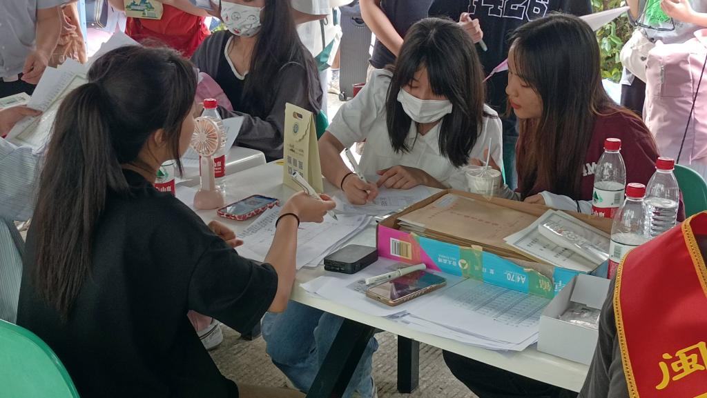 2022年9月1日,来自各地的外语商贸学院新同学相聚闽江师范高等专科学校(海口校区),拉开了人生新篇章。迎新工作开展前学校及学院领导对于此次迎新工作给予高度重视,于准备阶段多次召开部署会议充分讨论,并妥善安排新生辅导员做好新生入校前安全教育。外语商贸学院党总支林冉书记、陈颖副书记,以及学院辅导员钱小莉、许璐颖、郭瑜婷、洪扬、郑亦琅、龚俊浩等老师,与我院迎新志愿者井然有序的开展迎新工作,在大家齐心协力的配合中,我院五百余名新生严格遵守疫情防控常态化要求,从各地而来,有序完成报到。