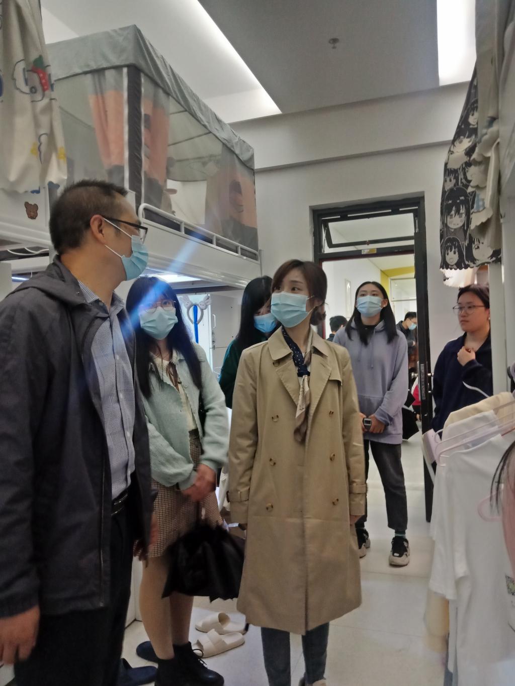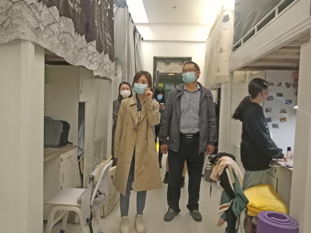 为全面贯彻落实学校关于疫情防控工作的要求和部署,深入了解学生学习、生活状况及存在问题与困难,11月2日晚,外语商贸学院综合科科长刘诗雨带领学院全体辅导员深入学生宿舍,开展学生宿舍疫情防控巡查工作。学生处副处长傅正立参与本次巡查工作。