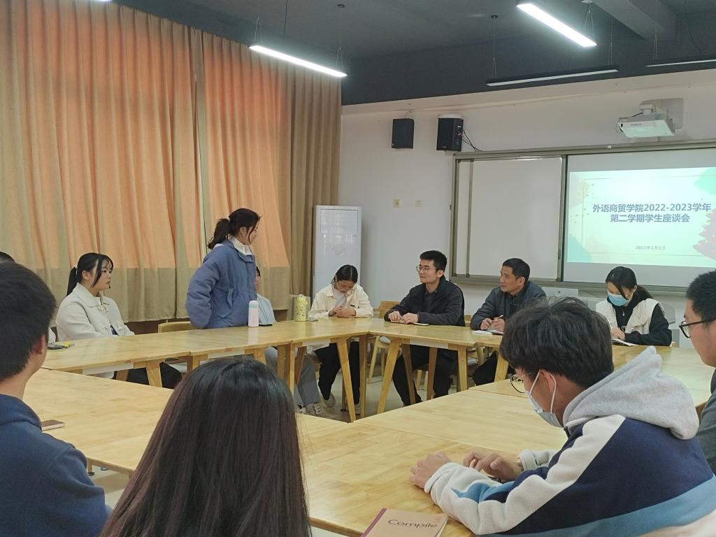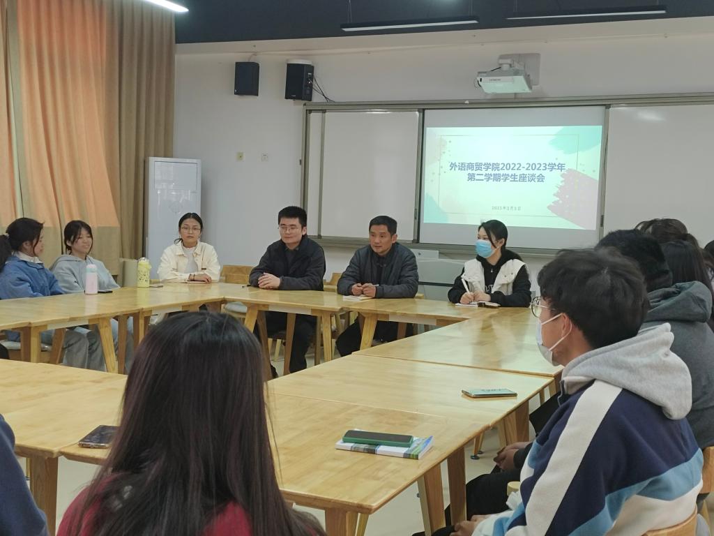 为进一步了解我院22级新生在校情况,解决学生在校期间遇见的问题,外语商贸学院于2023年3月3日在福清校区阅览室召开师生座谈会。出席本次会议有外语商贸学院林冉书记,辅导员郑亦琅、龚俊浩老师,以及22级新生代表,会议由辅导员郑亦琅老师主持。