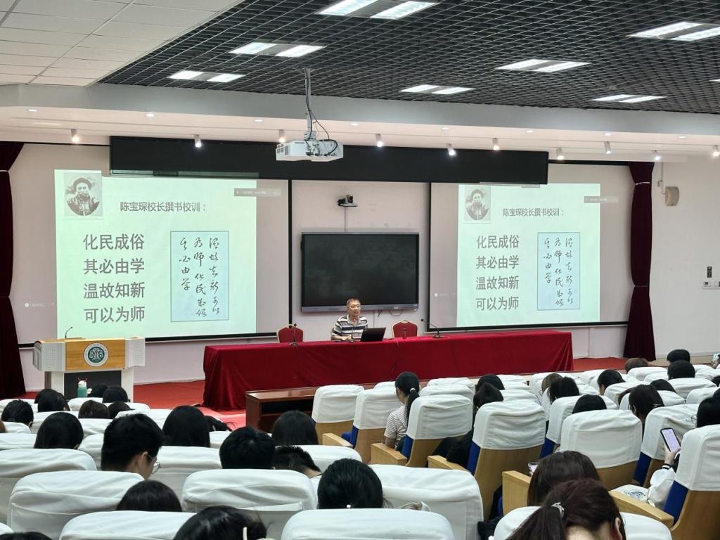 知校史,忆往昔峥嵘岁月;明校情,共筑未来辉煌。为帮助2023级新生更好地了解校史校情,从校史校情中汲取奋进力量,10月7日晚,外语商贸学院分别在旗山校区2018教室、福清校区线上会议同步开展校史校情教育讲座,本次讲座有幸邀请到福建省特级教师、闽江师专关工委秘书长姚翔老师担任主讲,2023级全体新生参加。