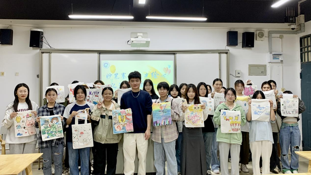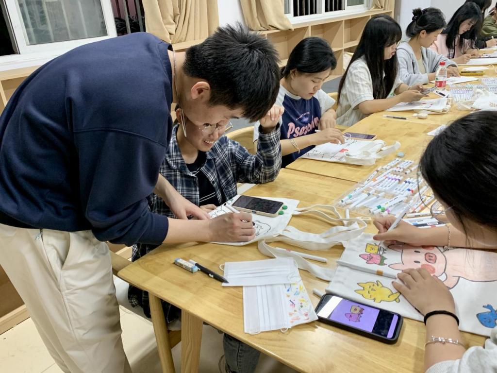 活动伊始,在龚老师的引导下,大家自由选择涂鸦材料,拿起画笔在帆布包和口罩上随心作画。涂鸦时,同学们聚焦当下,摒弃杂念,沉浸在指尖的“沙沙”声中,抓住当下的感受,用色彩将心里的任何情绪、想法、意境和故事表达出来,绘制出独属于自己的绘画作品。作品完成后,龚老师组织大家依次对自己的绘画作品进行展示与解读,并分享绘画时的所思、所想、所感、所悟。同学们在分享的过程中深刻感受到自己的情感、需求和内心的变化,找到了心灵的慰藉。最后,龚老师寄语同学们,期待他们能以更加积极健康的态度在未来的日子里继续焕发光彩!