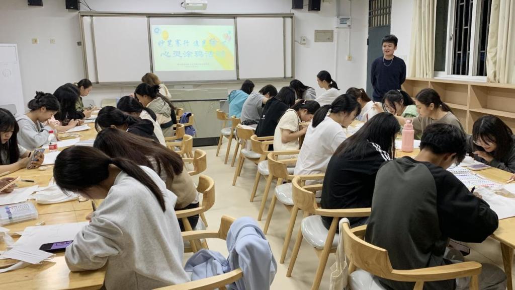 为全面提高学生心理素质,培养健康体魄,塑造健全人格,外语商贸学院于10月24日在福清校区102阅览室开展以“妙笔搴行,追光绘心”为主题的心灵涂鸦活动,辅导员龚俊浩老师和23级新生共同参与本次活动。