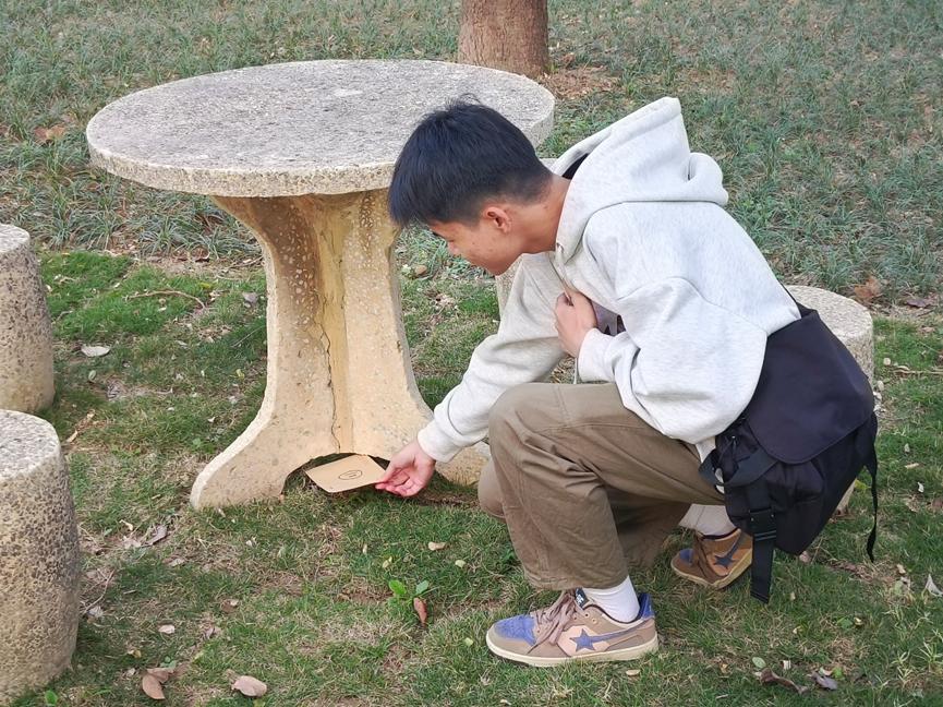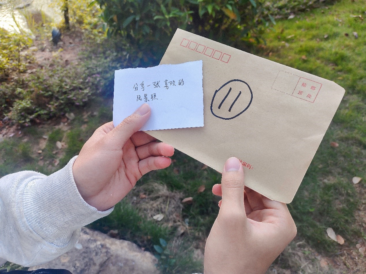 活动中,同学们怀揣着激动的心情寻找散落在校园各处的信封并且积极地完成信封中的小任务。活动现场,同学们争分夺秒,有的独自行动,志在必得,有的三五结伴,同逛校园,寻宝解密。每次找到信封时,同学们都会表现得非常兴奋,迫不及待地拆开信封完成任务。校园各处充满了欢声笑语。同学们的青春活力使冬日的校园充满了生机与朝气。