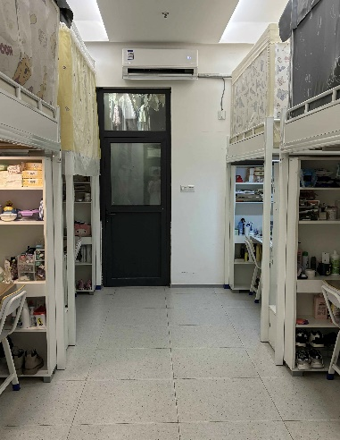 宿舍成员十分重视宿舍的环境。宿舍的个人物品摆放井然有序;垃圾及时清理;桌面整洁,地面干净。她们制定了合理的宿舍轮流值日制度,每个宿舍成员都能认真做好宿舍卫生工作,养成良好的卫生习惯。一个干净整洁、陈列有序的宿舍,不仅为她们提供舒适温馨的居住环境,也营造了安静和谐的学习氛围。