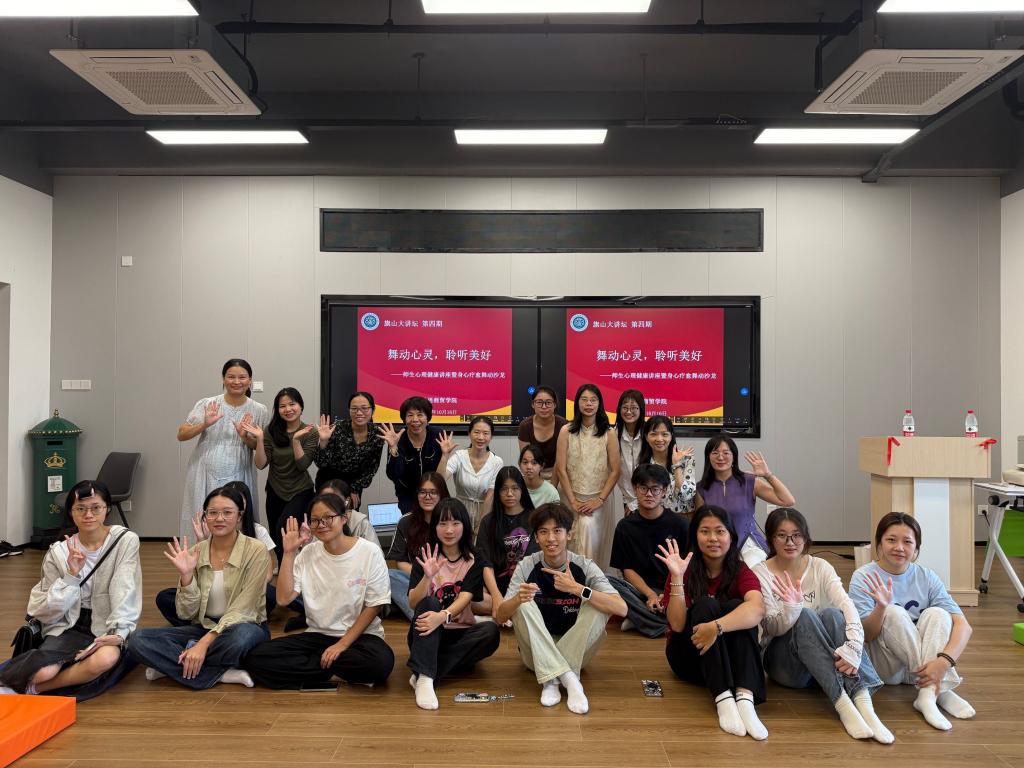 10月16日,外语商贸学院在旗山校区产创楼208室开展第四期旗山大讲坛——“舞动心灵聆听美好”师生心理健康讲座暨身心疗愈舞动沙龙活动。本次讲座由身心.悦舞动静心营创始人、吉利根博士亲授生生不息催眠师、国家三级心理咨询师黄秀珠老师主讲,外语商贸学院教师和学生代表参加活动。