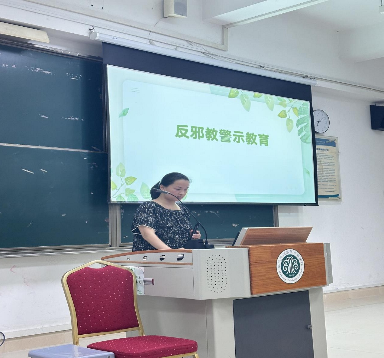 为切实增强学生对邪教的辨识能力和抵制意识,筑牢校园思想安全防线,2025年9月23日,外语商贸学院面向全体学生开展 “崇尚科学 反对邪教” 主题教育活动,活动由各班级辅导员主讲。