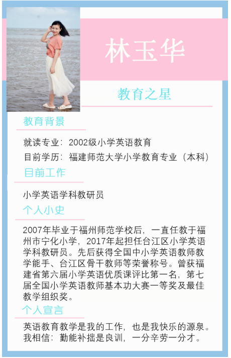 福建省第四届“清海杯—黄炎培职业教育奖”杰出教师1名;