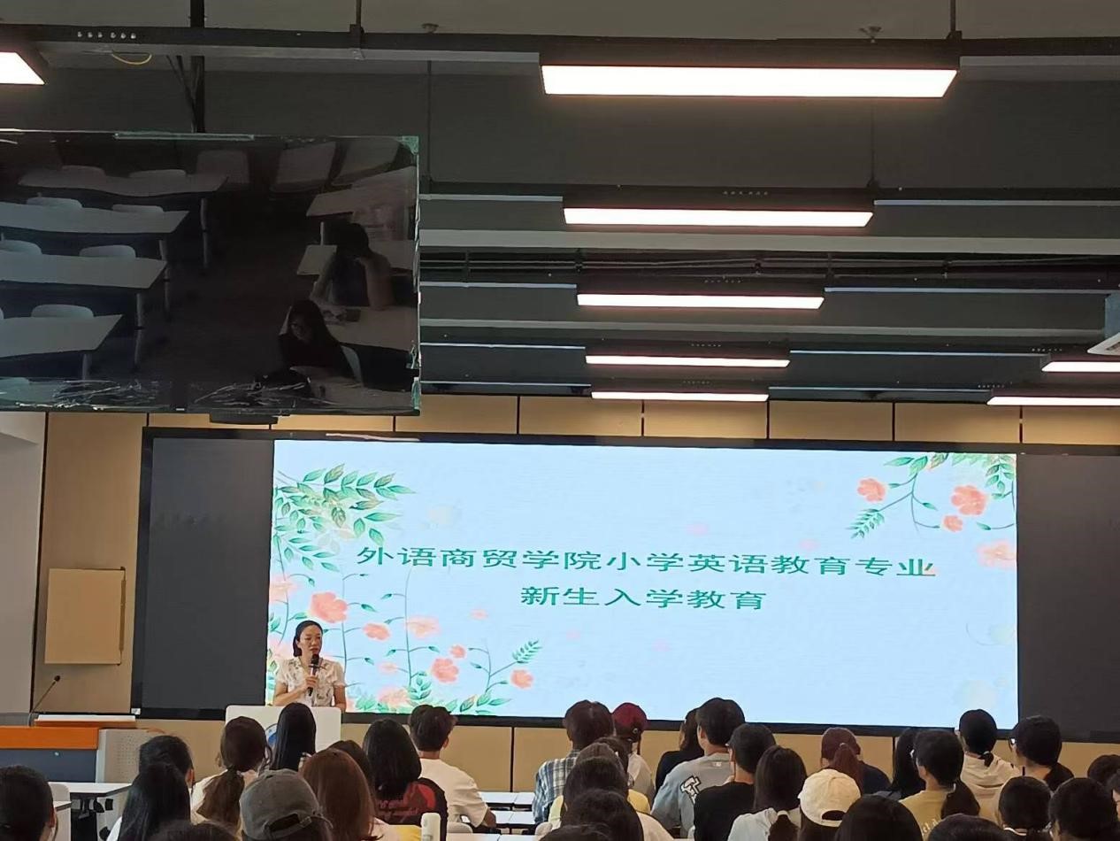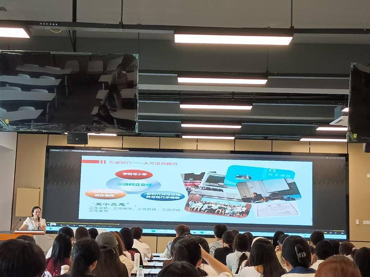 英语教育教研室主任尤佳老师重点向新生们介绍了小学英语教育专业的发展历史、雄厚的师资力量、基本教学情况和学生就业前景。她讲述历届优秀毕业生事迹以激励同学们设立目标,砥砺前进,强调订立人生目标的重要性。此外,通过典型案例向同学们强调了在大学生活中学生应有的为人处世的态度和学习态度。