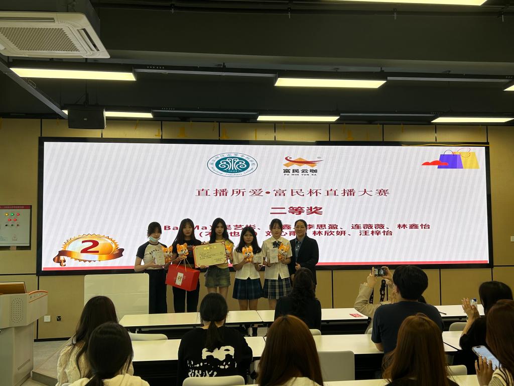 5月23日下午,外语商贸学院商贸教研室于现代商贸实训中心开展“直播所爱·富民杯直播大赛”。本次竞赛依托富民云咖科技信息有限公司,在富民直播平台开展直播实战比赛。比赛面向我院应用英语、应用外语、跨境电子商务电商、国际经济与贸易共计4个专业全体同学。报名选手2-5人为一组,需完成策划、选品、场控、直播、数据分析等直播带货各环节。