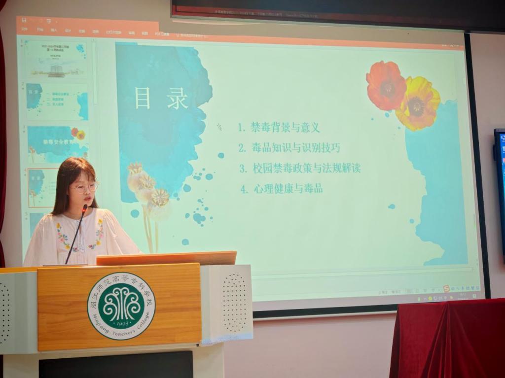 2024年6月2日晚,外语商贸学院开展就业安全教育,主题为:禁毒教育。本次活动由毕业班辅导员宣讲,2021级毕业班的全体学生参与。