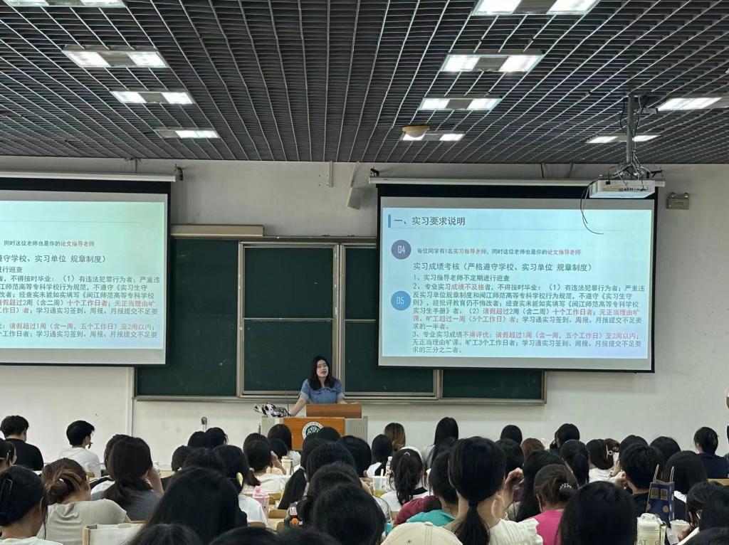 辅导员魏宁、林珊湉老师对离校手续进行了详细说明,提醒同学们按时完成宿舍搬迁、图书归还等事宜,确保离校过程顺利无碍。同时,她们特别强调了实习安全问题,要求同学们增强安全意识,注意人身安全、财产安全和网络信息安全,遇到紧急情况要及时与学院和实习单位沟通,确保实习期间的安全稳定。